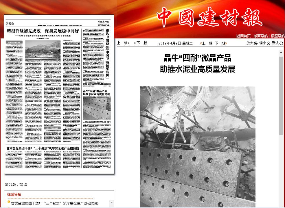 晶牛集團是高新技術企業,26年艱苦不懈研發攻關,鑄就工業微晶產業鏈。這條工業微晶產業鏈在鋼鐵、煤炭、電力、造紙、建材、化工、礦山、家電、海運等行業的1100余家骨干企業中得以應用。晶牛集團為落實建材協會領導提出的“兩個二代”指示精神,對原有“兩耐”工業微晶產品進行改造、提升,最終研制生產出“四耐”微晶(耐磨、耐腐、耐沖擊、耐高溫)。經多次檢驗測試,晶牛“四耐”微晶新材料具有高耐磨、耐高溫、耐腐蝕、熱穩定性好等優良性能,適合在水泥、玻璃、陶瓷等行業的高溫窯爐中易結皮、需耐磨、需耐高溫的部位應用。