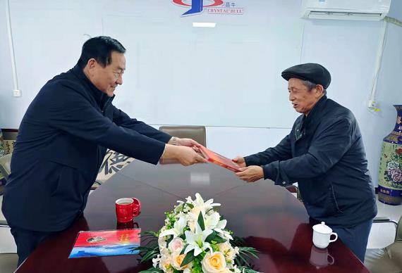 10月17日,星期天上午,深秋的邢臺,天高云淡,湛藍而碧凈。帶著剛剛送走國慶72周年和晶牛建廠65周年華誕的喜悅心情,晶牛集團特意將從晶牛光榮退休的全國勞動模范宋建立迎到集團,在二樓東會議室與全國勞動模范、晶牛集團董事長王長林進行了一次紅色十月的對話,了卻了宋建立同志退休后的多年心愿。